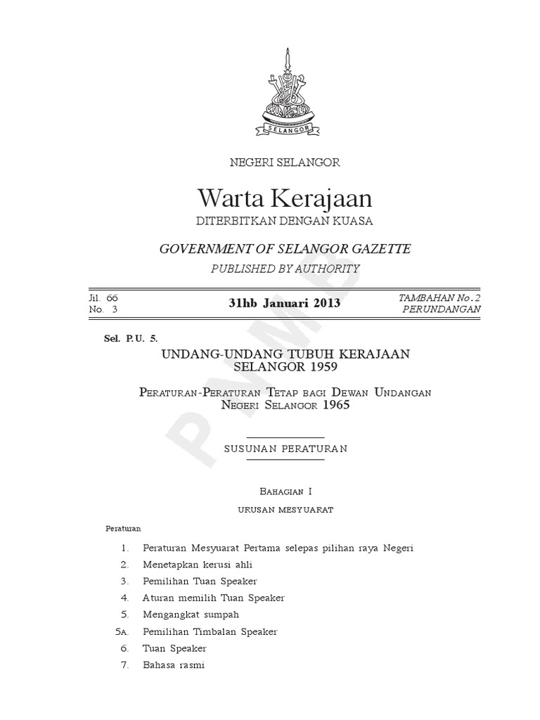 Peraturan Peraturan Tetap Bagi Dewan Undangan Negeri Selangor 1965