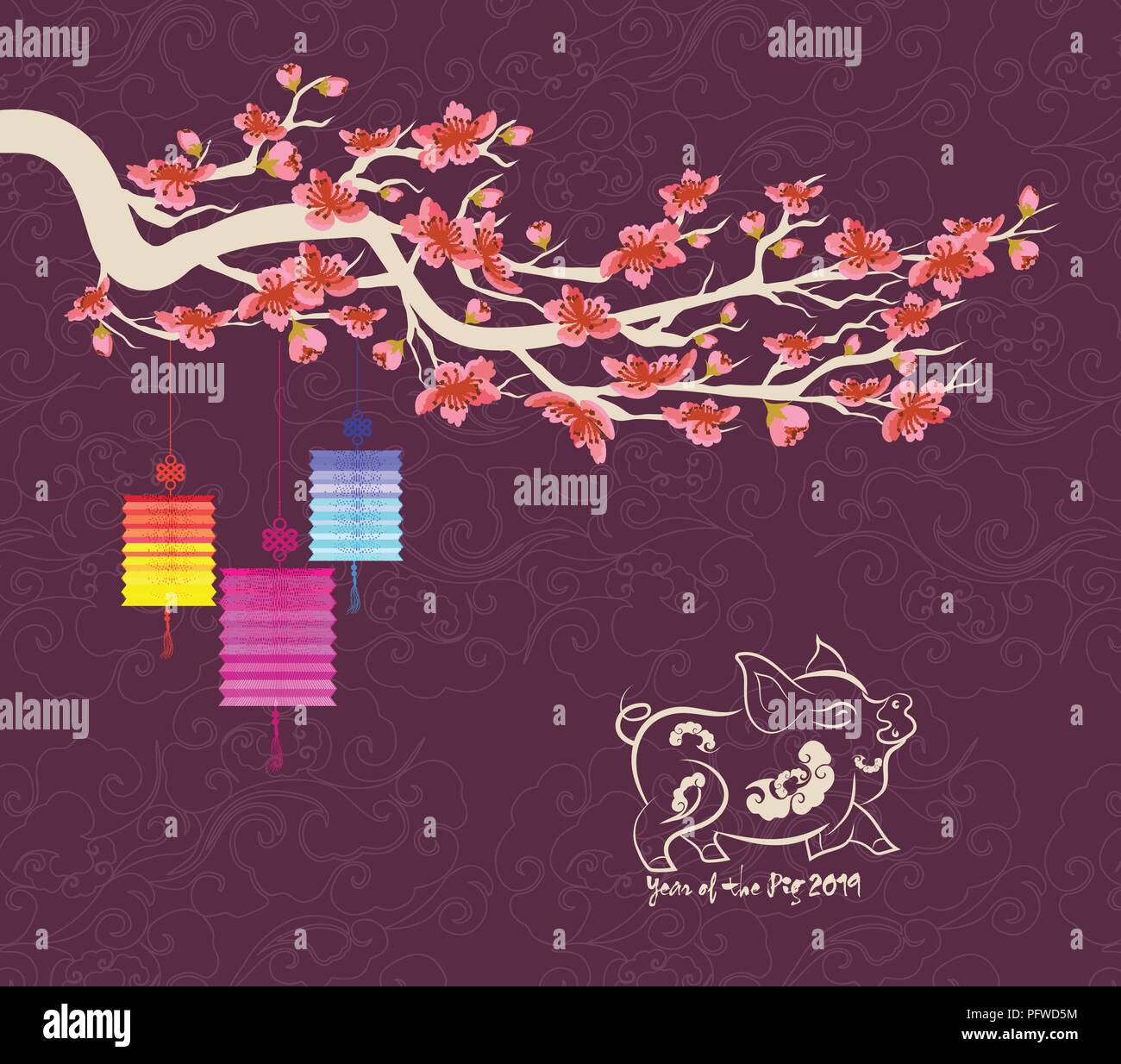 Happy New Year 2019 Greeting Card Chinese New Year Of The Pig Stock Vector Image Art Alamy