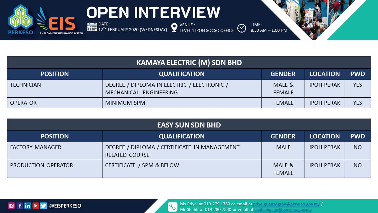 Temuduga Terbuka Mingguan Eis Perkeso Laman Rasmi Eis Perkeso Facebook