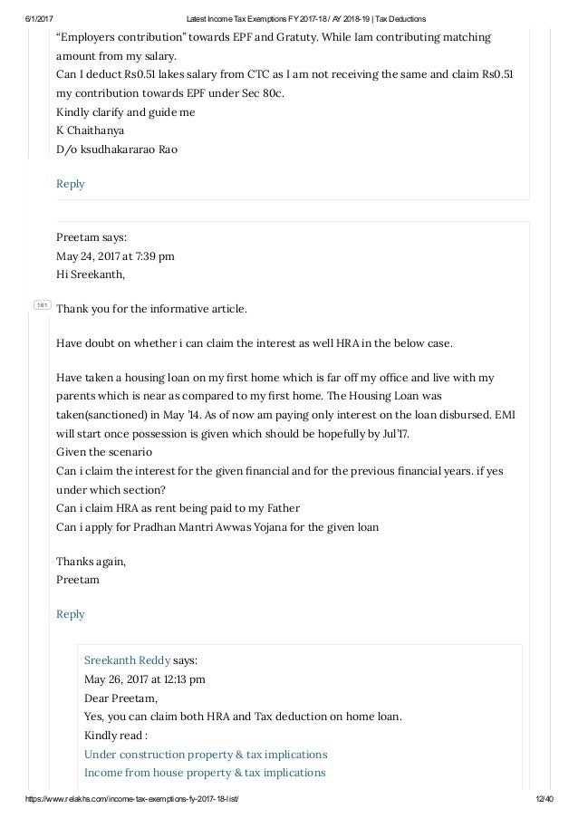 Latest Income Tax Exemptions Fy 2017 18 Ay 2018 19 Tax Deductions
