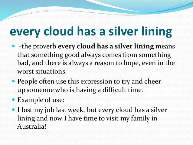 Twenty English Idioms And Common Expressions Every Cloud Has A Silver Lining Yesterday I Lost My Wallet But At The Police Station I Met A Long Lost Ppt Download