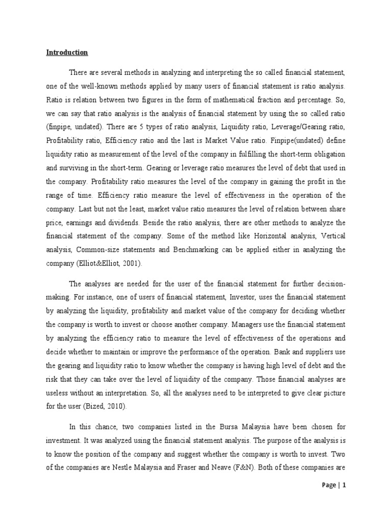 Ratio Analysis For Nestle And F N