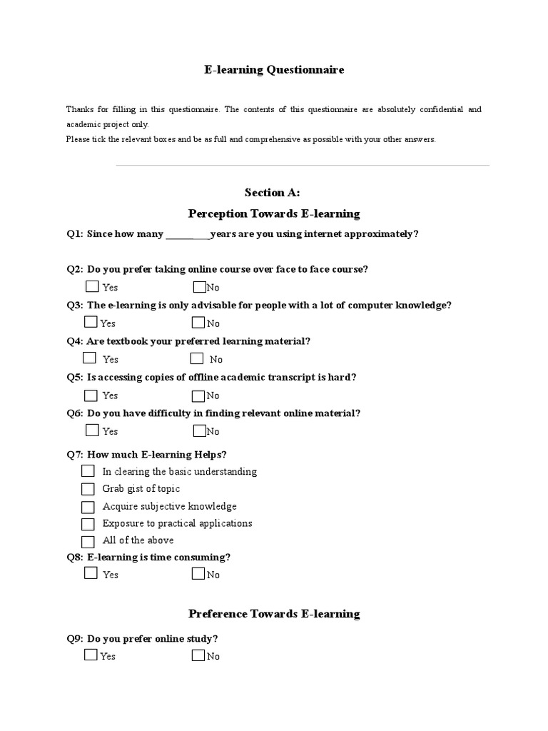 Questionnaire Educational Technology Learning