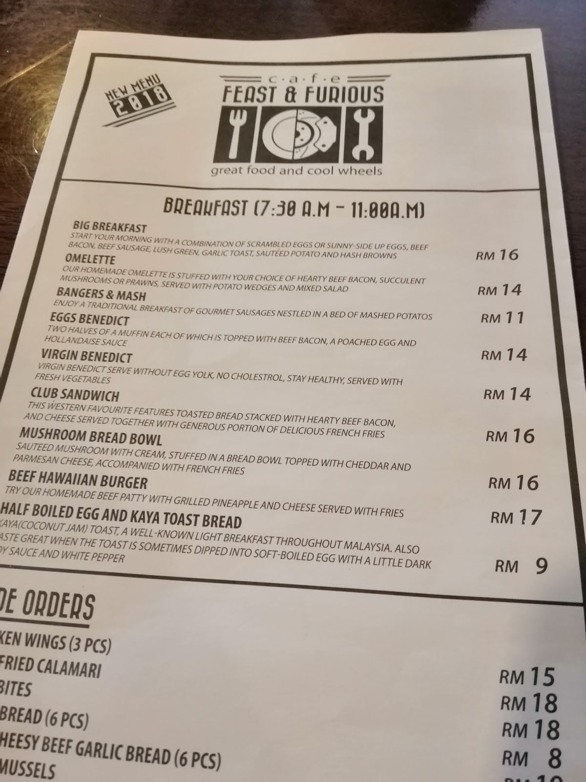 Menu Picture Of Feast And Furious Cafe Kuching Tripadvisor