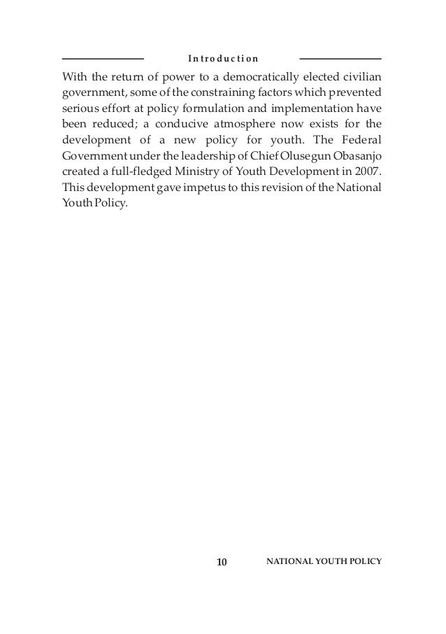 National Youth Policy Of Nigeria Revised 2009 Federal Ministry Of Y