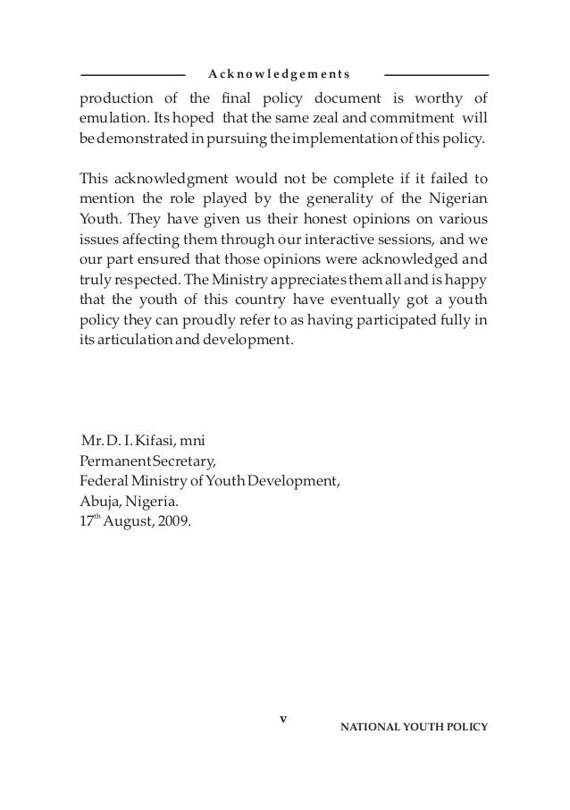 National Youth Policy Of Nigeria Revised 2009 Federal Ministry Of Y