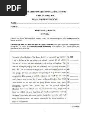 Form 2 English Mid Year Exam Pt3 Format Poaching Malaysia