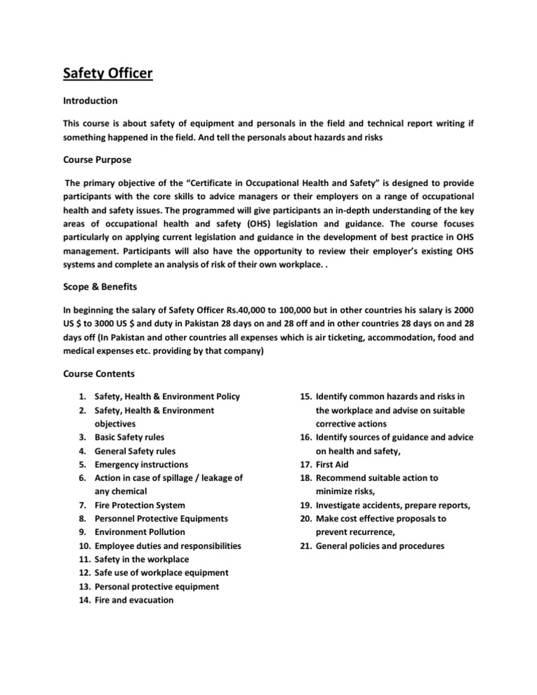 Fire Safety Officer Job Description Occupational Safety And Health Safety