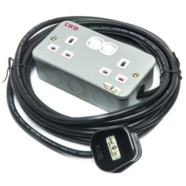 Heavy Duty Metal Clad Extension Trailing Socket Extension Wire 2 Gang 5 Meter 10 Meter 15 Meter Cable