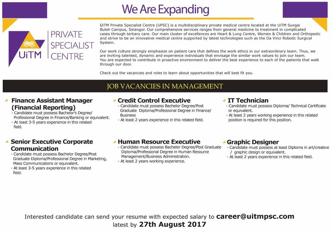 Jawatan Kosong Uitm Private Specialist Centre Sdn Bhd Uitm Psc Iklan Jawatan Kosong