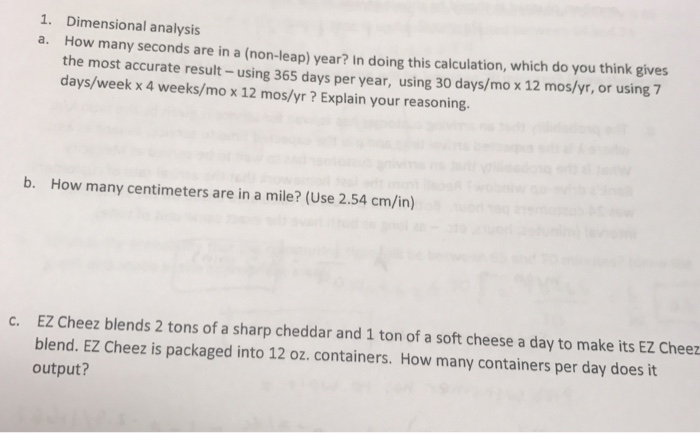 Solved Dimensional Analysis A How Many Seconds Are In A Chegg Com