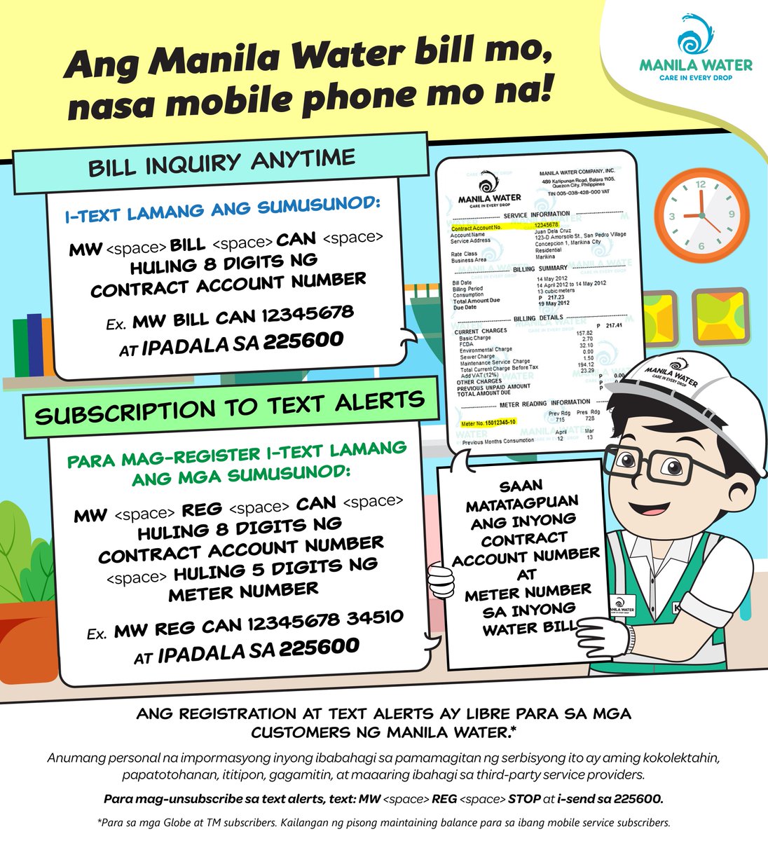 Manila Water On Twitter There Are Now Two Ways To Use Your Mobile Phone For Manila Water Bill Inquiry And Other Free Text Alerts