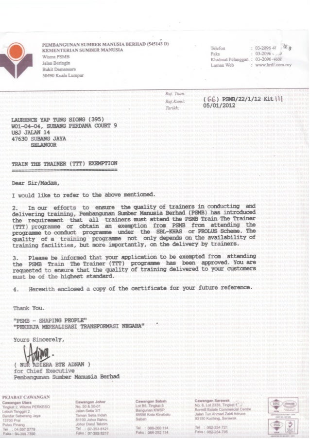 Business Coach Leikhong On Twitter After So Many Years I Finally Received My Ttt Exemption Certificate From Hrdf Better Be Late Than Never Ttt Is The Basic Standard For Any Trainer In