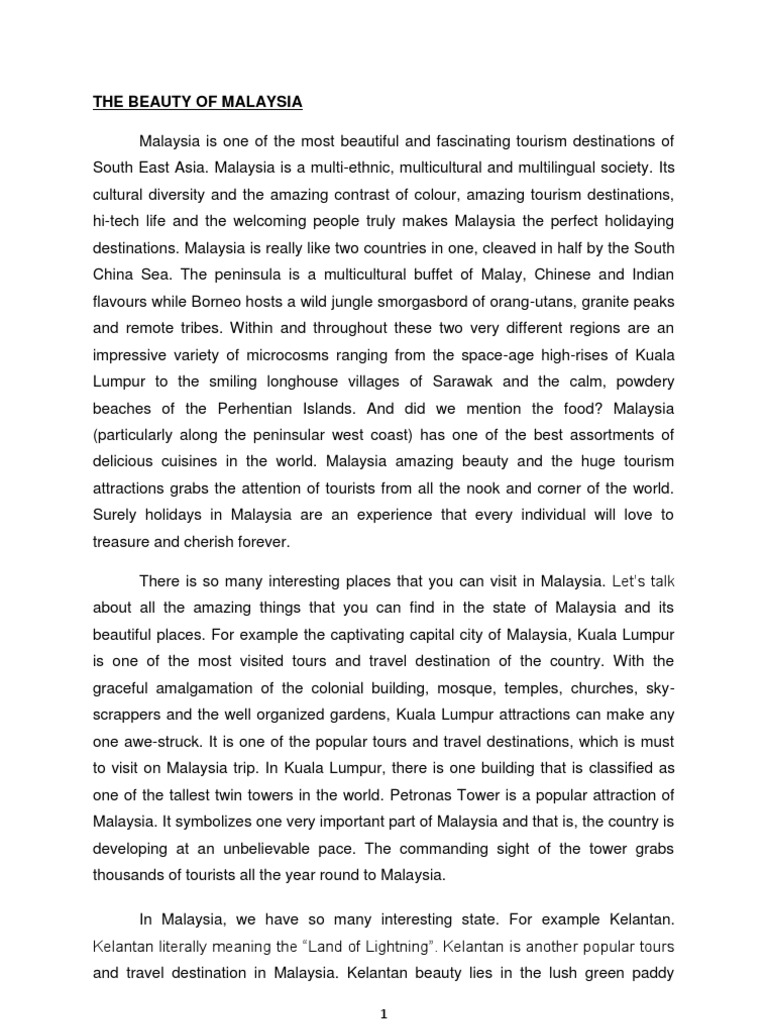 The Beauty Of Malaysia English Essay Malaysia Tourism