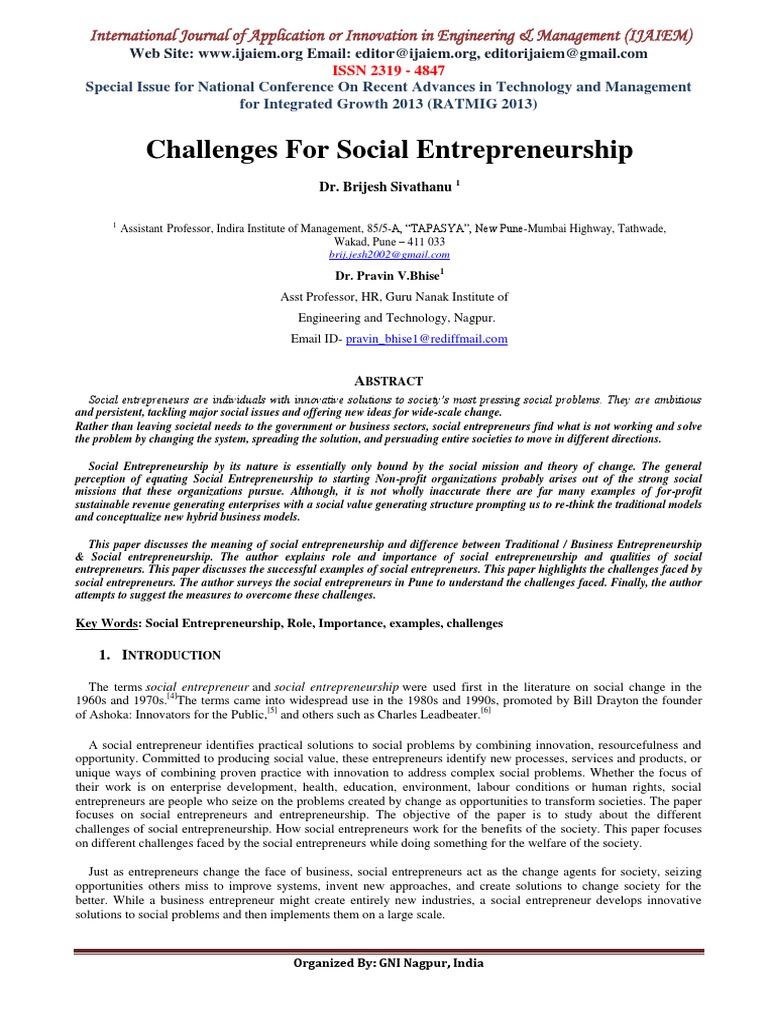 Mgt 25 Challenges For Social Entrepreneurship Pdf Social Entrepreneurship Social Enterprise