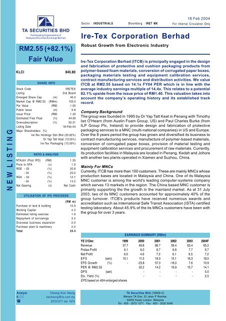 Company Profile Ire Tex Corporation Company Company Profile Ire Tex Corporation Berhad