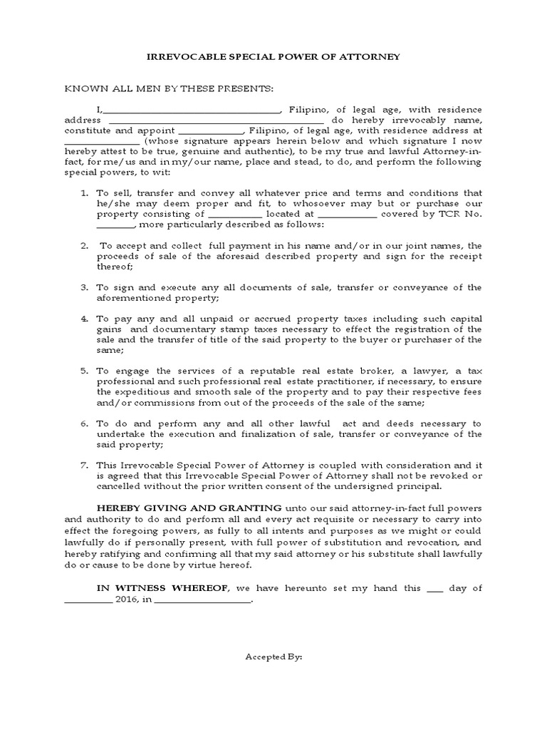 Spa Irrevocable2 Docx Power Of Attorney Private Law