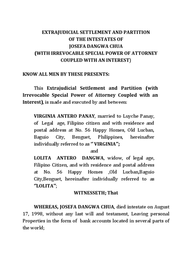 Extrajudicial Settlement Dangwa Power Of Attorney Banks