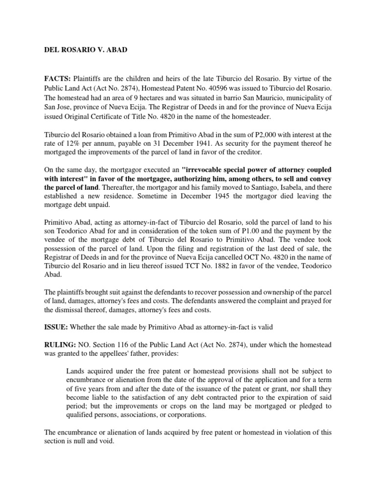 83 Del Rosario V Abad Digest Mortgage Law Power Of Attorney