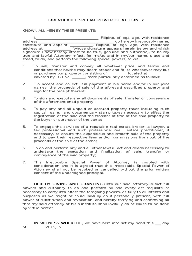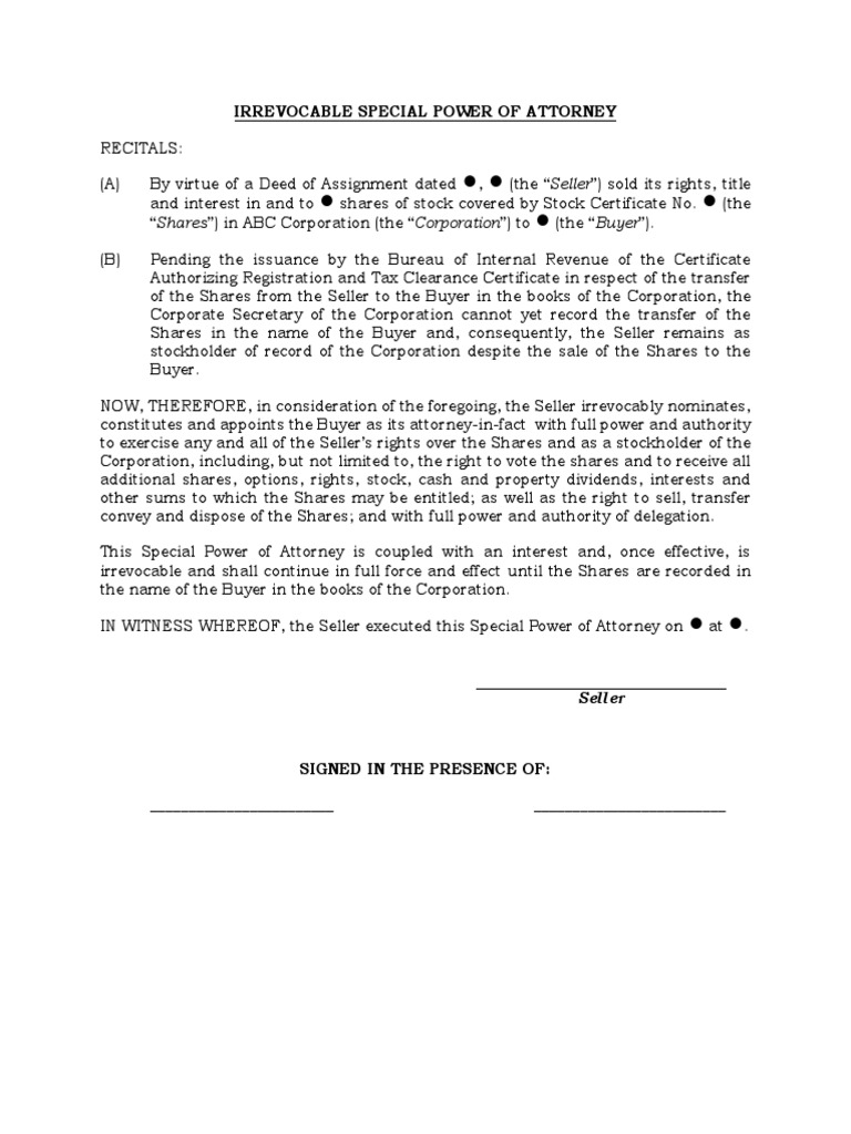 Irrevocable Special Power Of Attorney Docx Power Of Attorney Stocks