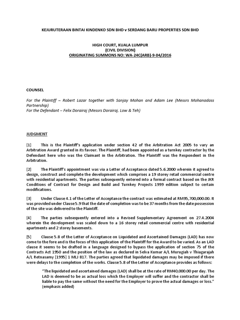 Lampiran C Raw Judgement 29 Kejuruteraan Bintai Kindenko Sdn Bhd Damages Liquidated Damages