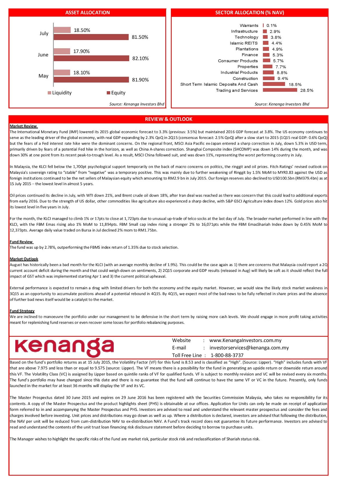 Islamic Investment At Kenanga Investors Berhad Top Unit Trust In Malaysia Kenanga Syariah Growth Fund Fact Sheet August 2015