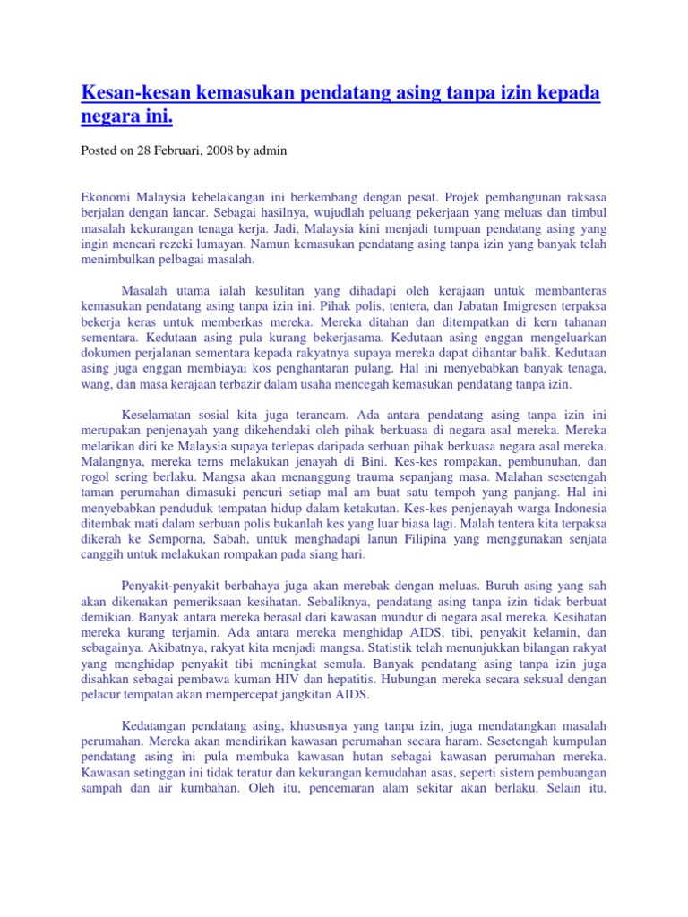 Kesan Kemasukan Pendatang Asing Ke Malaysia Dan Cara Mengawal
