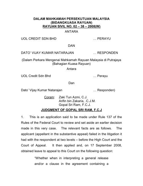 Rayuan Sivil No 02 38 2008 W Antara Uol Credit Sdn Bhd Kelantan
