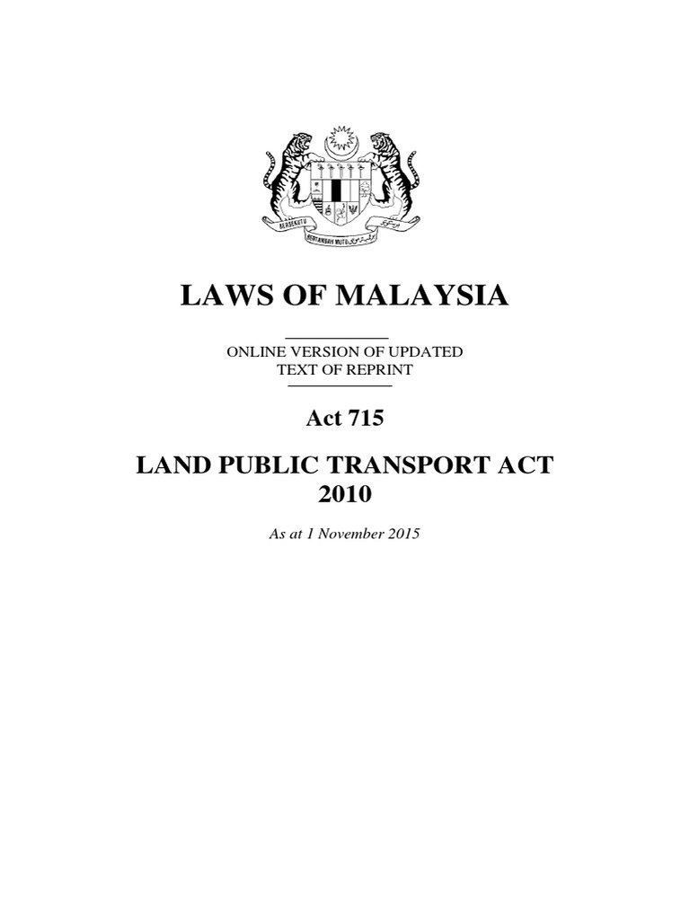 Ilbs Land Public Transport Act 2010 Act 715 Shopee Malaysia
