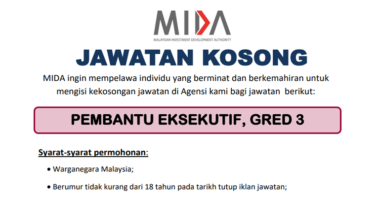 Jawatan Kosong Lembaga Pembangunan Pelaburan Malaysia Mida 1 Kerja Kosong Kerajaan