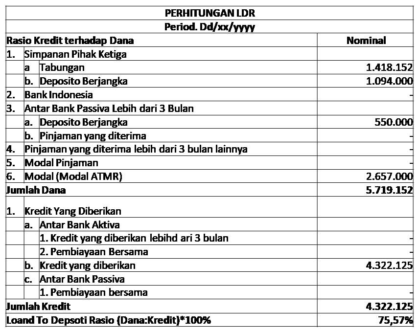Cara Menghitung Tks Rasio Ldr Loan To Deposit Ratio Bpr Poke Bank