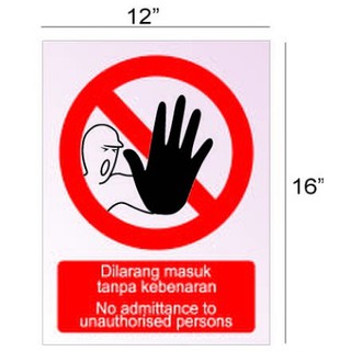 Dilarang Masuk Sign No Admittance Sign Safety Sign 12 X 16 Shopee Malaysia